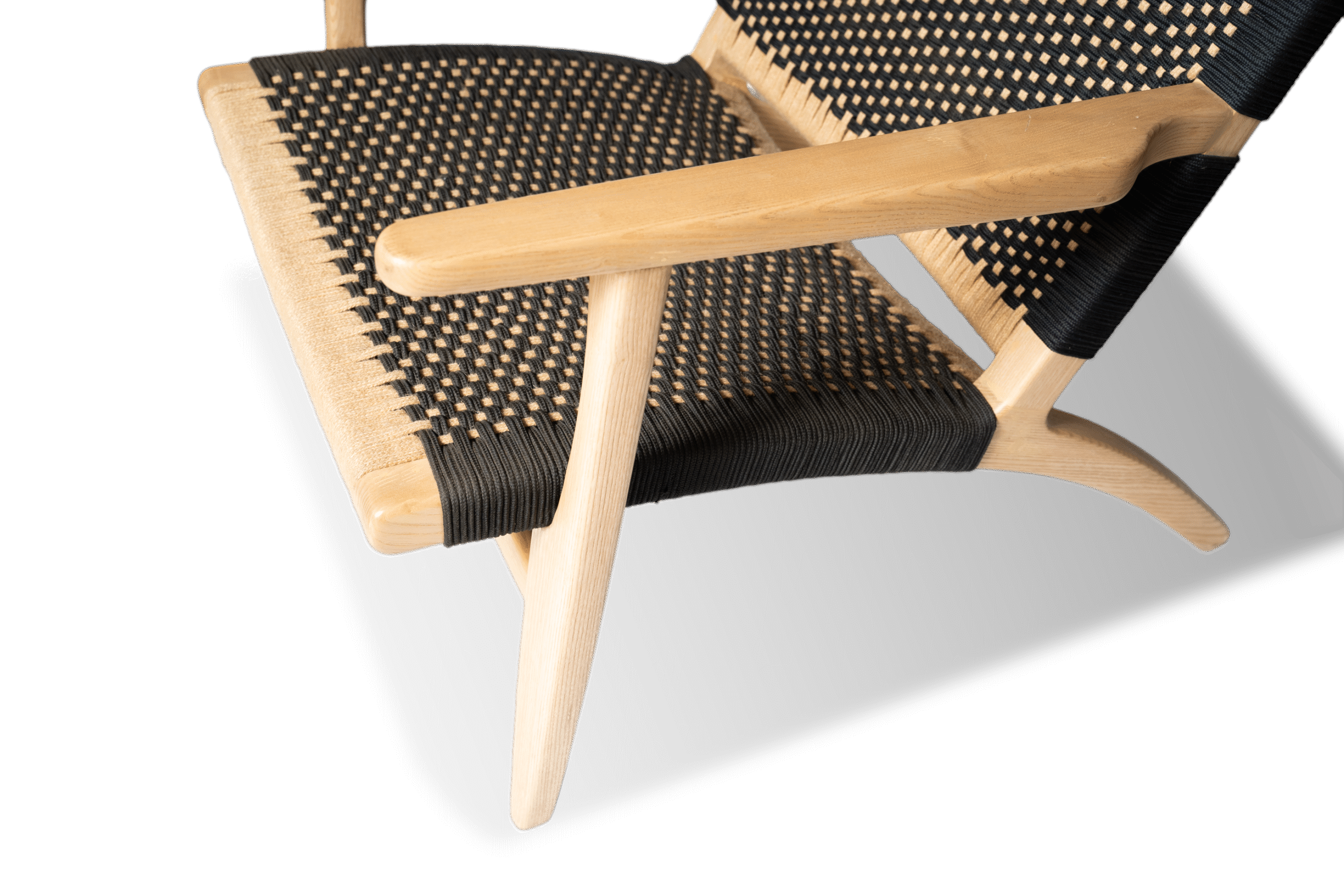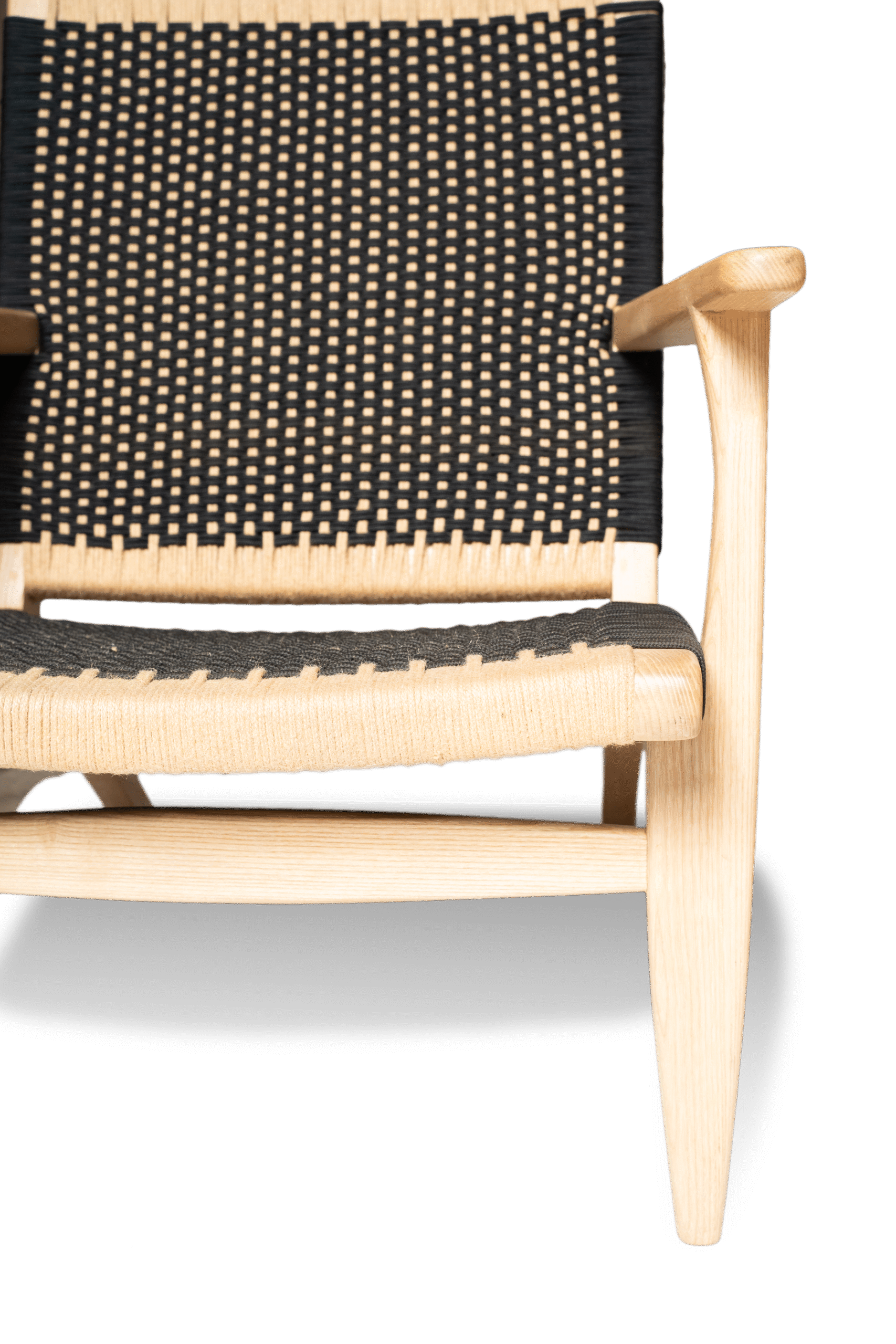 The Black Jute Balcony Chair – Black and White is a beautifully crafted seating piece made from solid white ash wood, designed for personal use with a focus on comfort and craftsmanship. Finished with a smooth interior PU matte polish, the frame highlights the subtle grain of the wood. The seat and backrest feature intricate handwoven jute in a striking black-and-white pattern, adding both texture and contemporary charm. Measuring 28 inches wide, 30 inches deep, and 26 inches high, with an 18-inch seating height, this chair offers relaxed, stylish balcony seating. A perfect blend of natural materials and modern design.