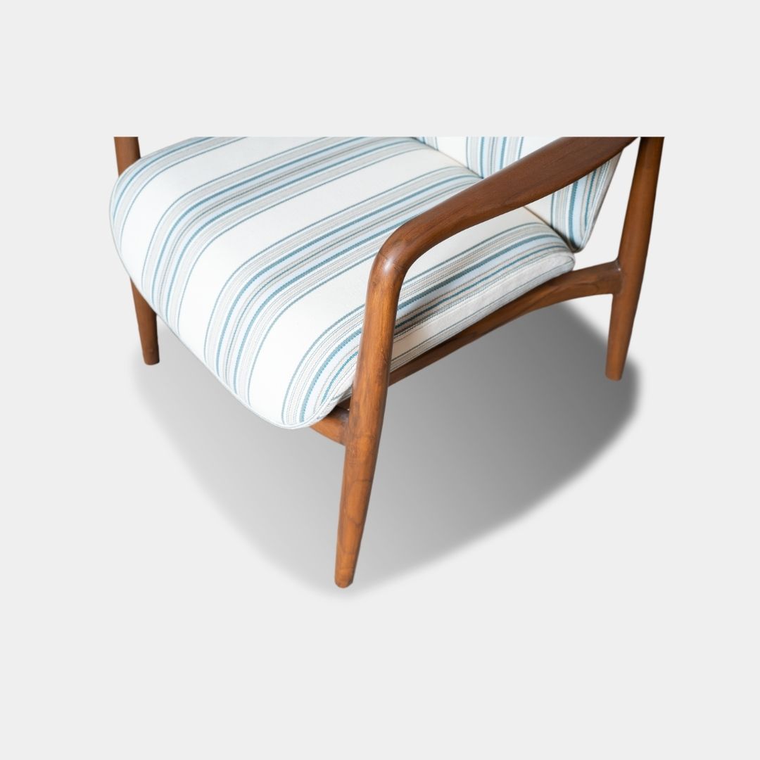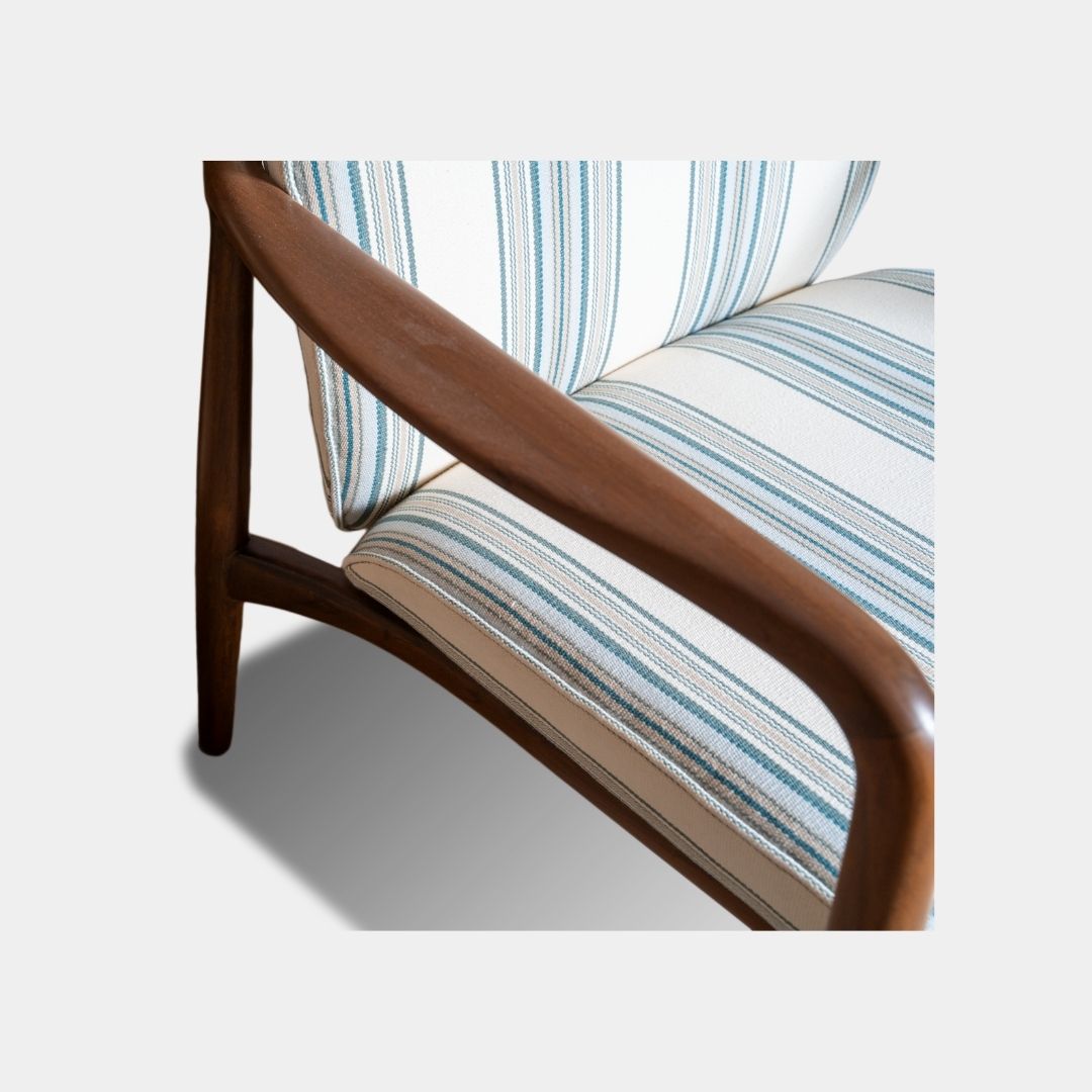 The Curvatious Accent Chair is a single arm chair crafted entirely from solid teak wood, offering strength and natural warmth. Finished with an interior PU matte polish, it has a smooth, refined look that suits modern and classic interiors alike. With a width of 26 inches, depth of 27 inches, total height of 36 inches, and a comfortable seating height of 18 inches, this chair is designed for everyday comfort. It was custom made for a client seeking a stylish yet durable accent piece.