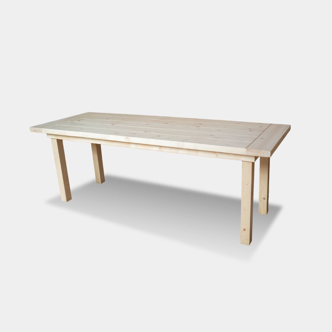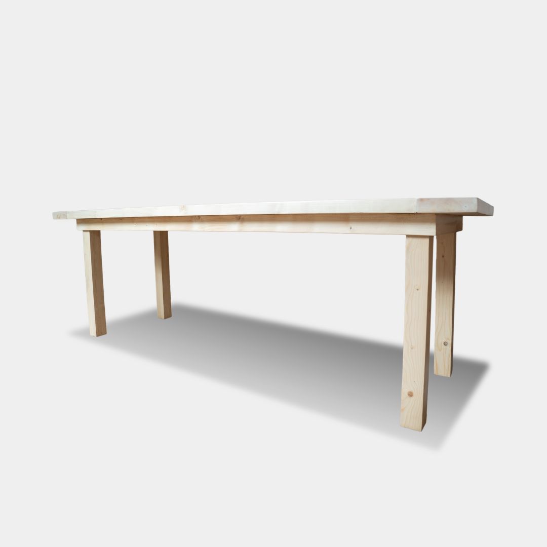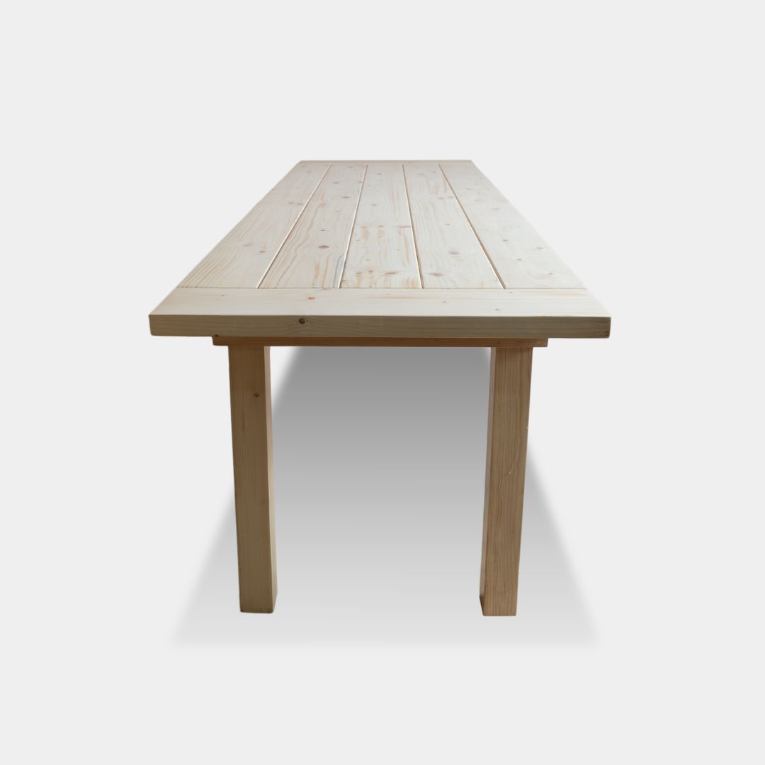The Spruced Up Table is crafted from solid spruce wood, a softwood known for its light feel and natural texture. Finished with an interior PU matte polish, it offers a clean and understated appearance. Measuring 6 feet in length, 3 feet in depth, and 30 inches in height, this table provides a functional surface suitable for dining or work. Its simple design makes it a versatile addition to any space, combining practicality with subtle elegance, and serving as an accessible option within our product range.